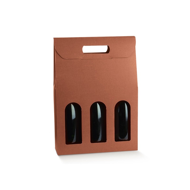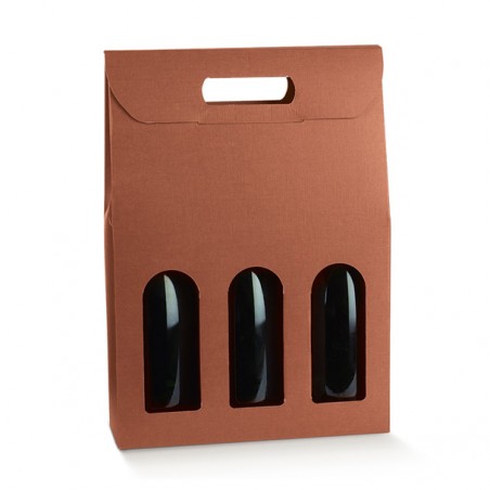 Scatola in cartone accoppiato con maniglia per confezionare 3 bottiglie verticali modello bordolese, borgognotta.