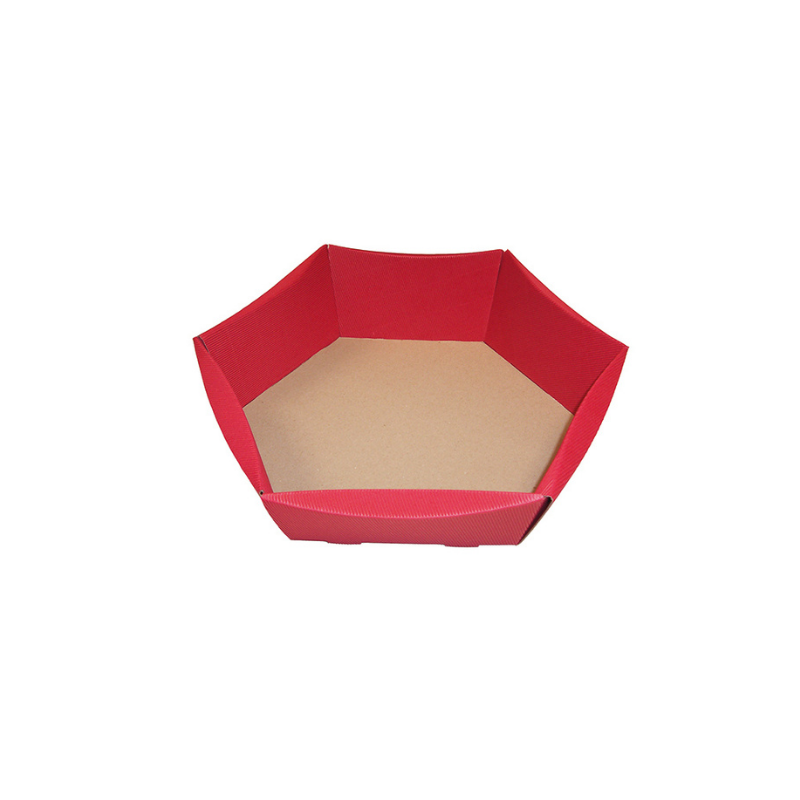 Cesto esagonale in cartone ideale per la creazione cesti regalo per ogni esigenza, dai salumi alla frutta, da prodotti natalizi a quelli pasquali.