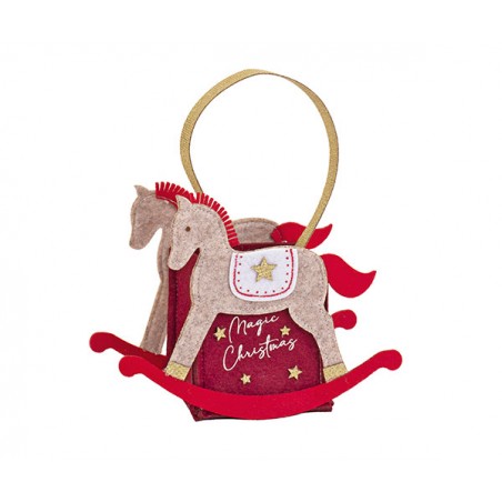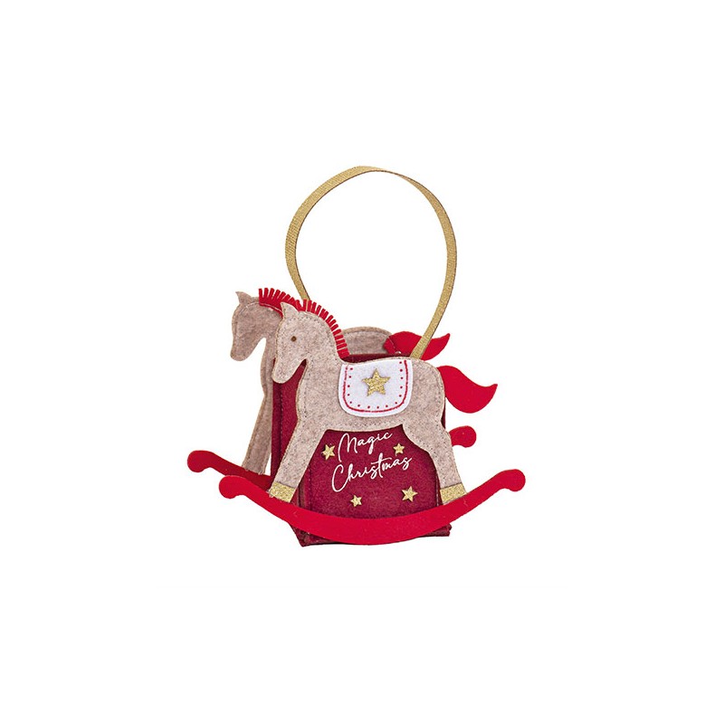 Cestino in feltro e cotone a forma di cavallo a dondolo