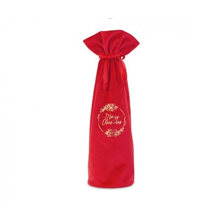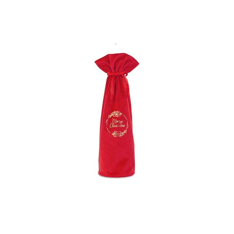 Sacco portabottiglia in velluto con scritta "Merry Christmas" color oro