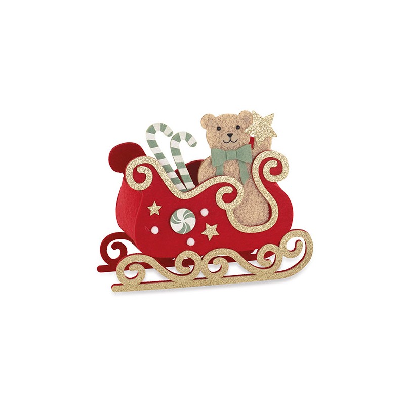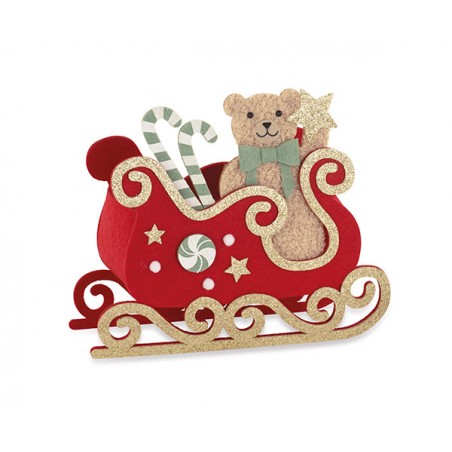 Contenitore in feltro a forma di slitta con orsetto.