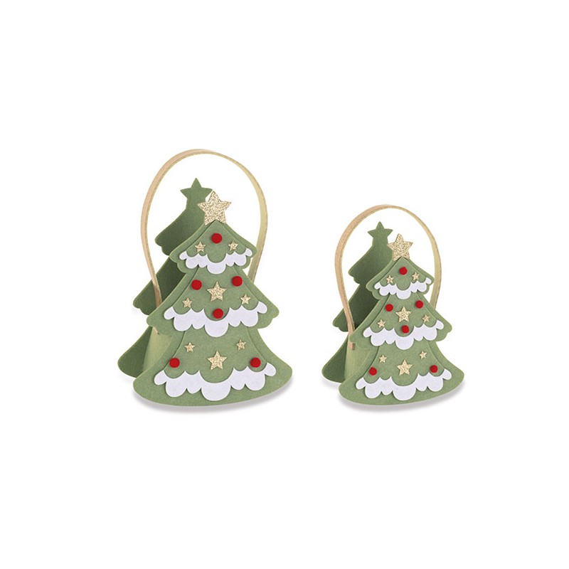 Set di due cestini in feltro a forma di albero di Natale.