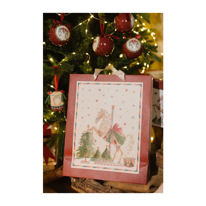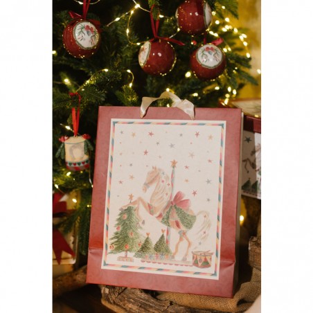 Shopper in carta con disegno natalizio vintage.
