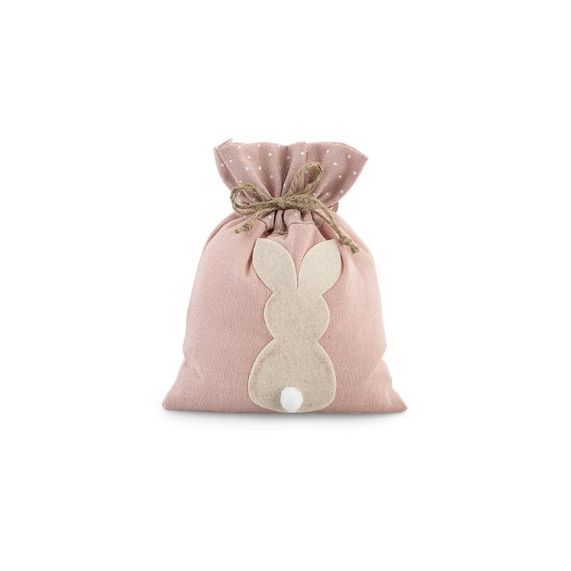 Sacchetto rosa con coniglietto dalla coda a pompom.
