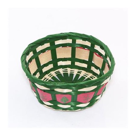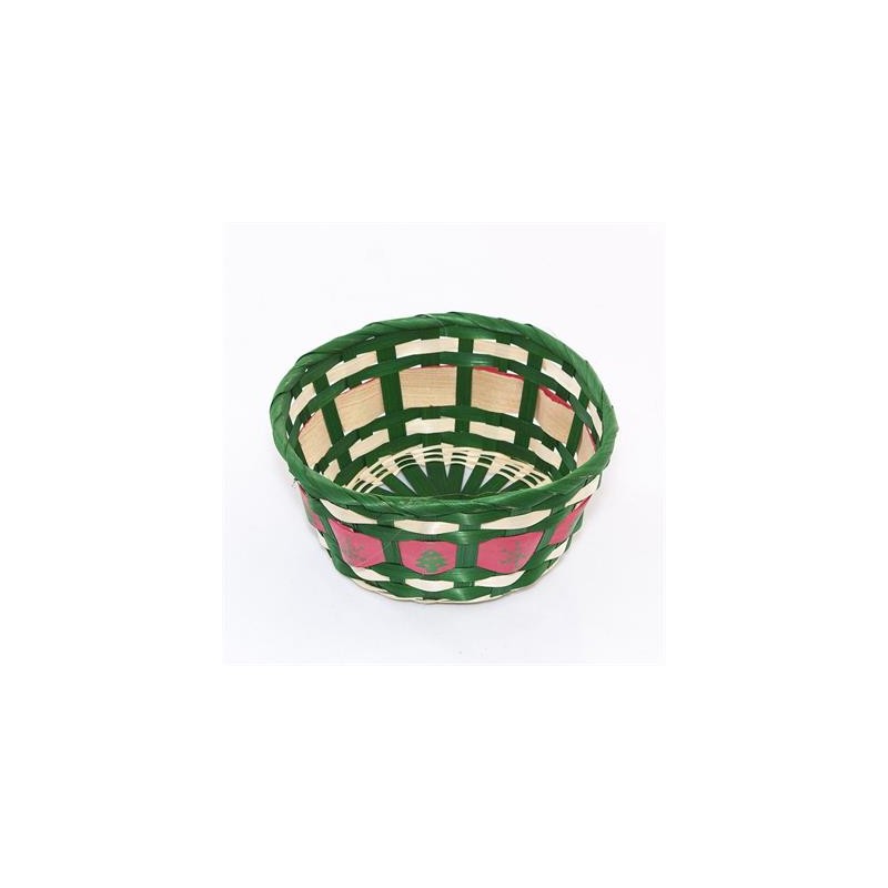Cestino rotondo in bamboo verde, rosso e bianco con decori di Natale
