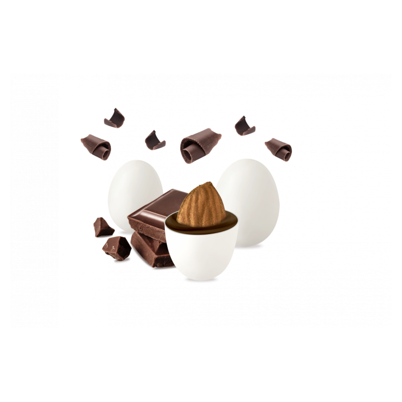 Confetto con mandorla tostata ricoperta da cioccolato fondente e da un sottile strato di zucchero.