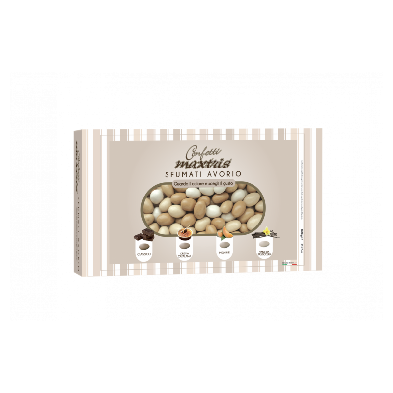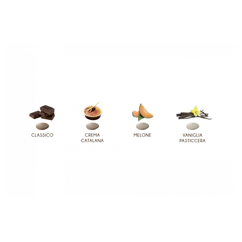 Confetti con mandorla tostata ricoperta da cioccolato bianco ai gusti assortiti ricoperti da un sottile strato di zucchero.