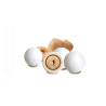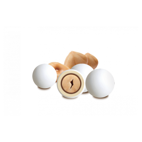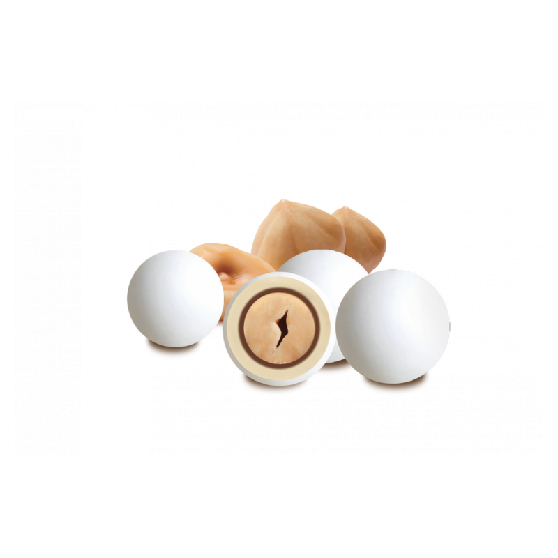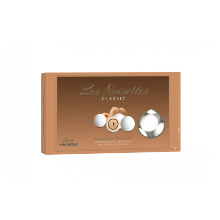 Confetto con nocciola tostata ricoperta da cioccolato fondente e bianco e da un sottile strato di zucchero.