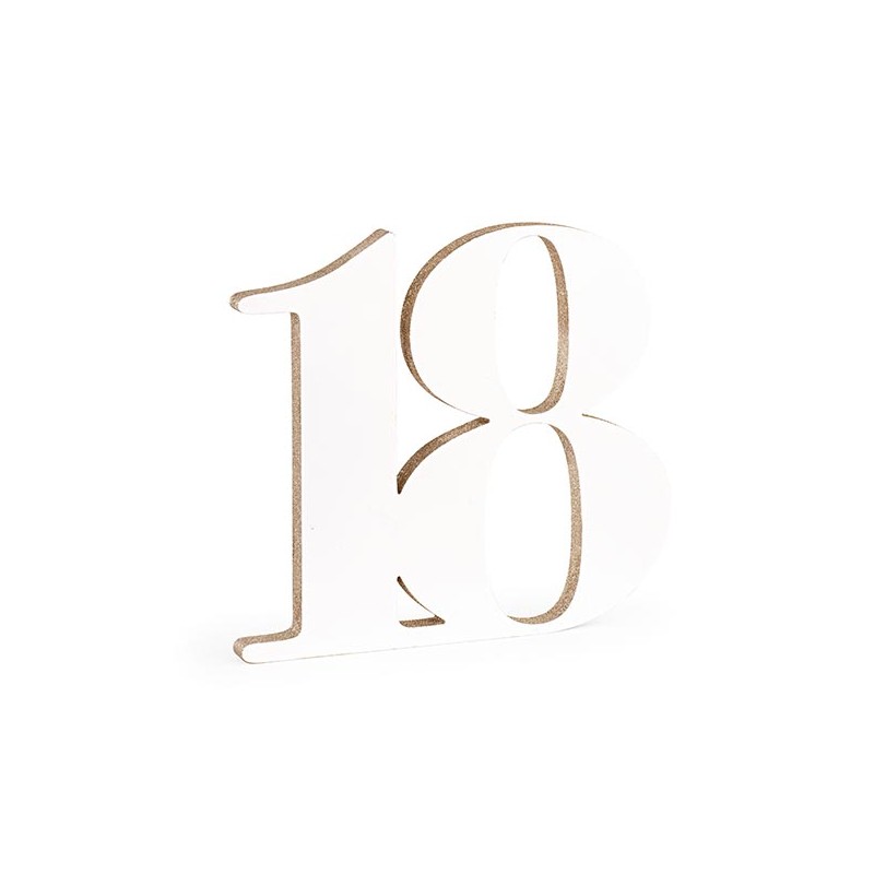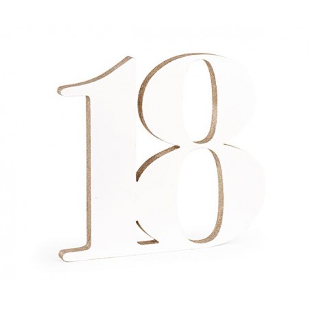 Tavola di legno rappresentante un 18 bianco glitterato