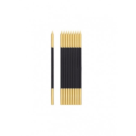Confezione di 10 candele nero e oro