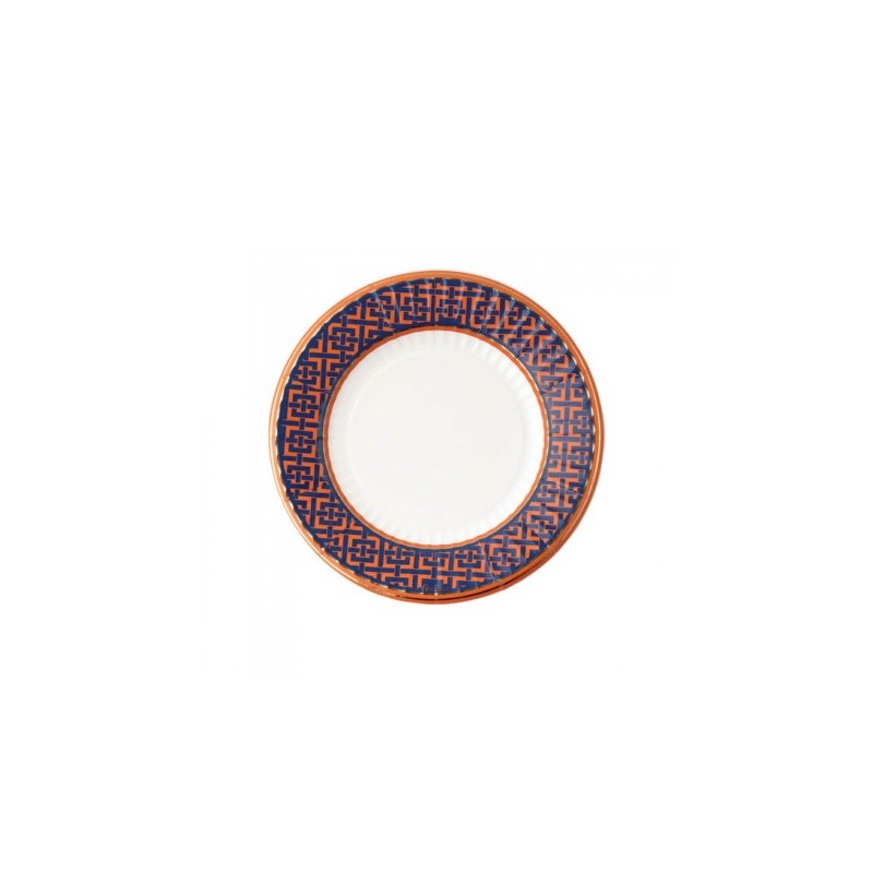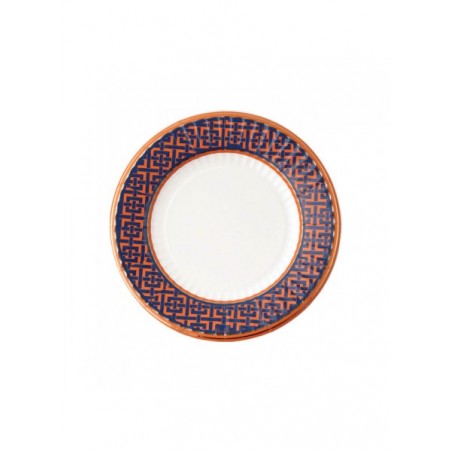 Grazie al suo decoro geometrico ed all'abbinamento del blu e dell'arancio il set sfoggia un design elegante e decorativo, un tocco di oro riesce ad esaltare ed impreziosire la mise en place.