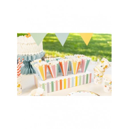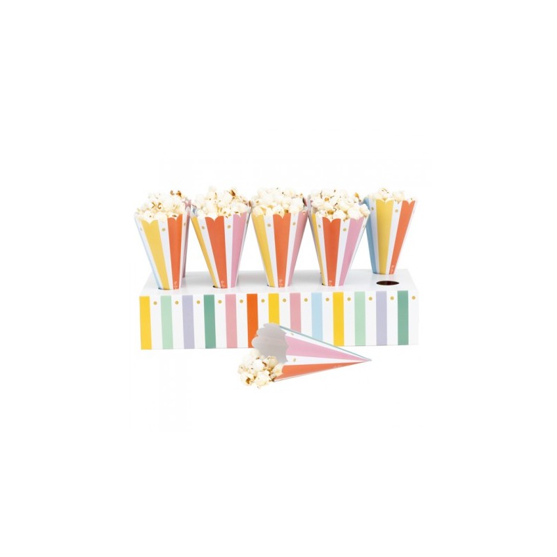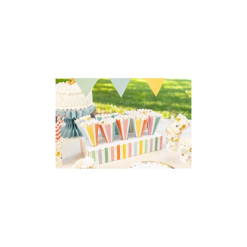 Pratico e decorativo, mantiene i coni ordinati sul tavolo e aggiunge un tocco allegro e colorato all’allestimento, rendendo ogni momento snack ancora più speciale e festoso.