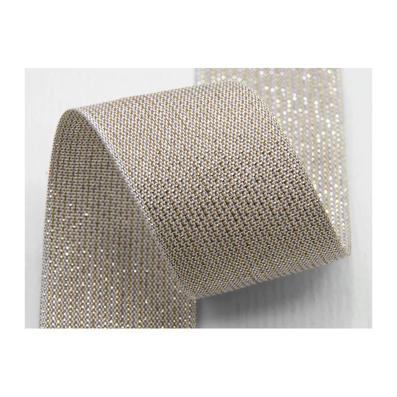 È un nastro coprente, illuminato da fili di lamè aggiunti nella trama che creano un effetto festoso.