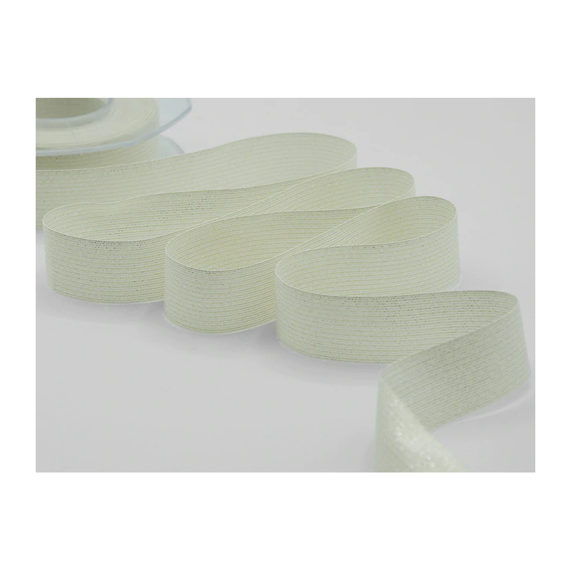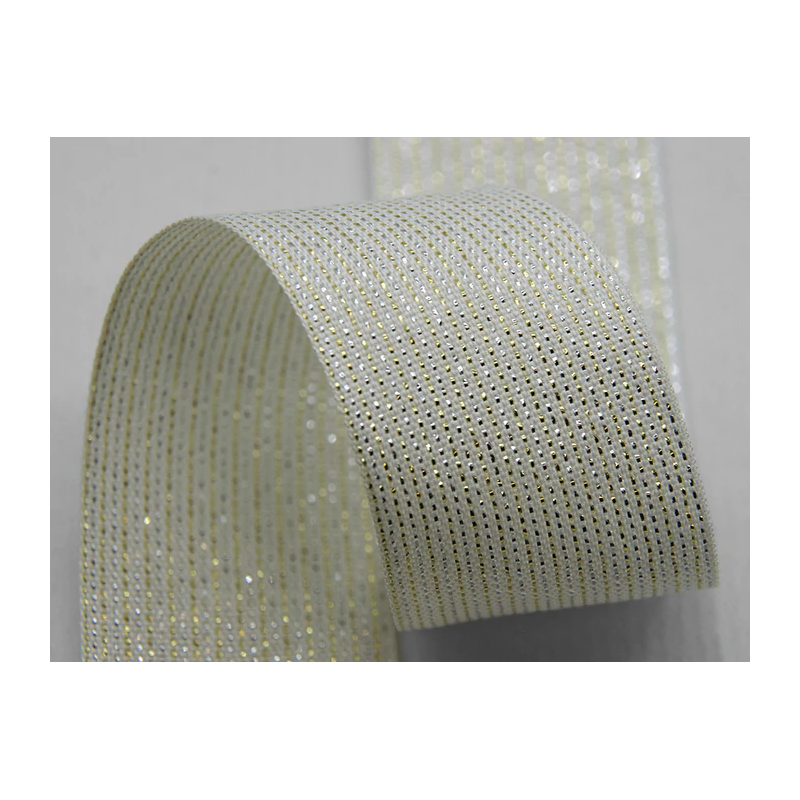 È un nastro coprente, illuminato da fili di lamè aggiunti nella trama che creano un effetto festoso.