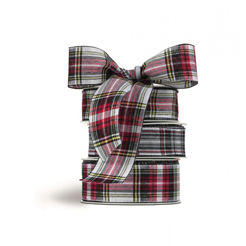 Nastro dall’aspetto cotoniero, in fantasia scozzese, disponibili in due varianti di colore.