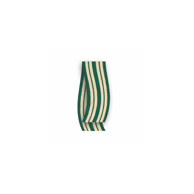 Questo nastro si ispira a dettagli di arredamento inglese, dove poltrone o carte da parati, sono realizzati con righe di diverso spessore dai colori alternati al tono naturale ecrù.