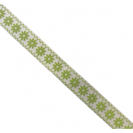 Nastro in cotone con stampa fiori, altezza 15 mm