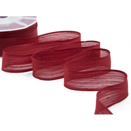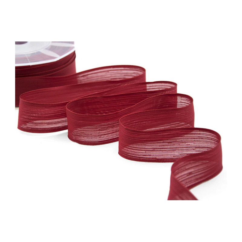 Un nastro dall’aspetto grezzo in cui si intravede una trama fiammata, i suoi bordi sono rinforzati quindi sono facili da lavorare e da modellare e mantengono la forma nel tempo per vari tipi di decorazione.