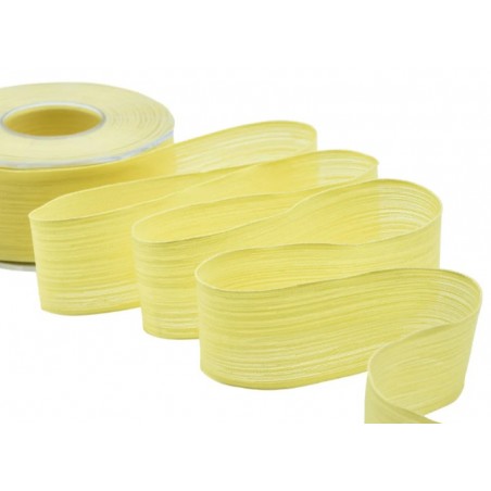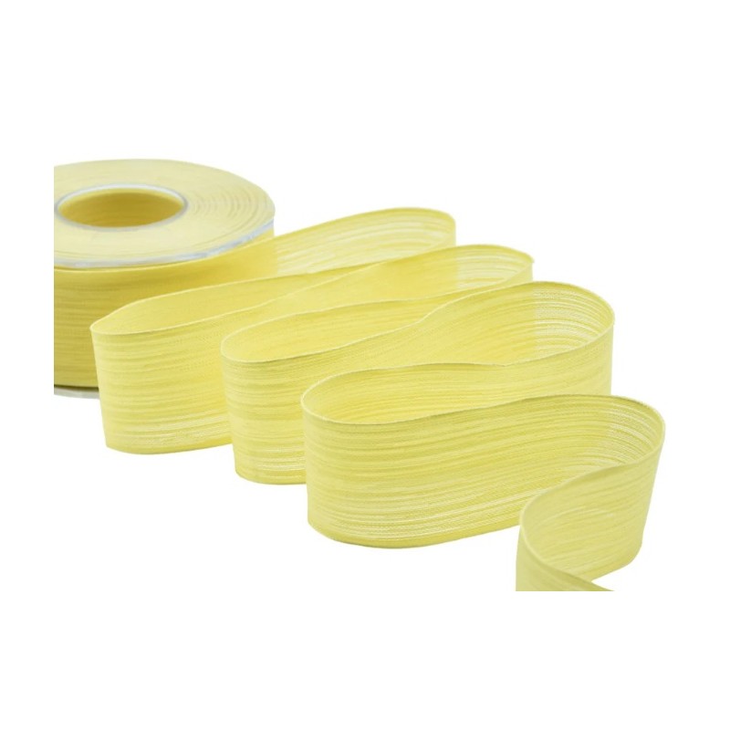 Un nastro dall’aspetto grezzo in cui si intravede una trama fiammata, i suoi bordi sono rinforzati quindi sono facili da lavorare e da modellare e mantengono la forma nel tempo per vari tipi di decorazione.