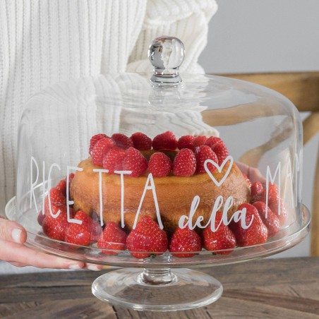 Campana in vetro con scritta ricetta della mamma.