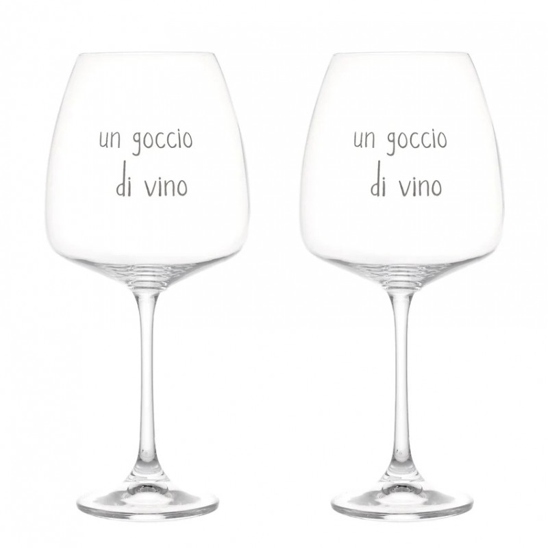 Godetevi ogni sorso con questo elegante set di 2 calici da vino con disegno decorativo "un goccio di vino".