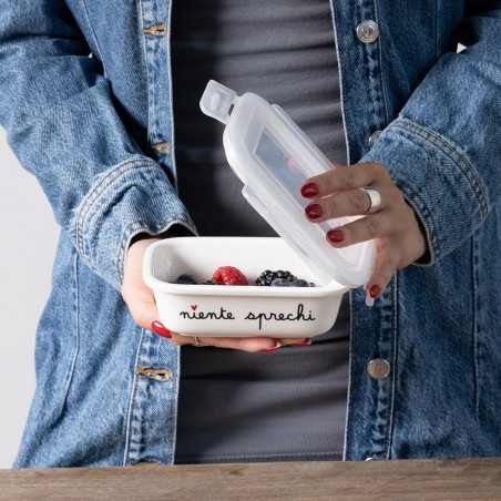 Contenitore in gres con coperchio ermetico e decoro Niente Sprechi