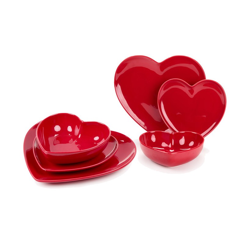 Set di 18 piatti a cuore in ceramica