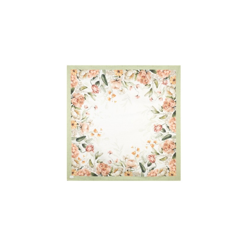 Centro tavola in tessuto Garden Flower con disegni floreali e bordo tinta unita.