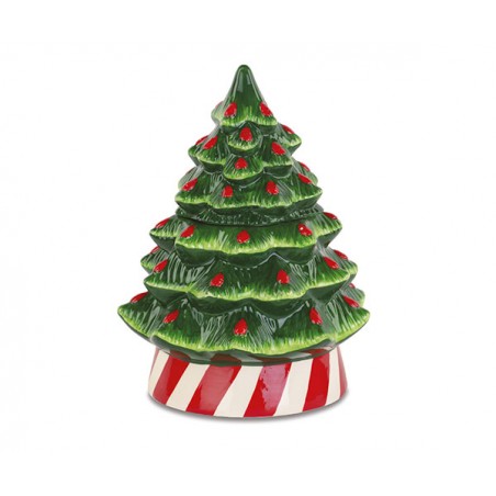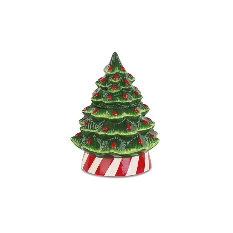 Barattolo natalizio a forma di albero di Natale con coperchio.