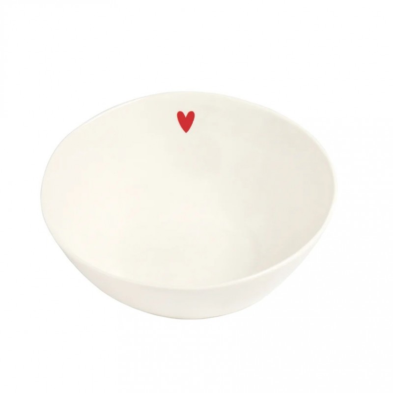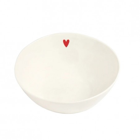 Insalatiera in grès con cuore rosso.