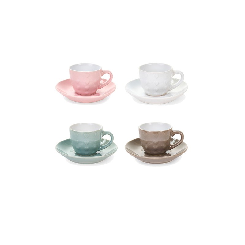 Set di 6 tazzine di caffè con cuori e piattino.