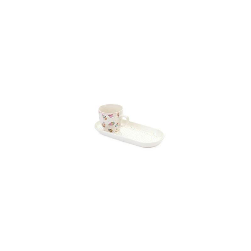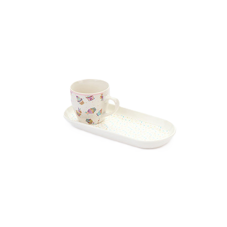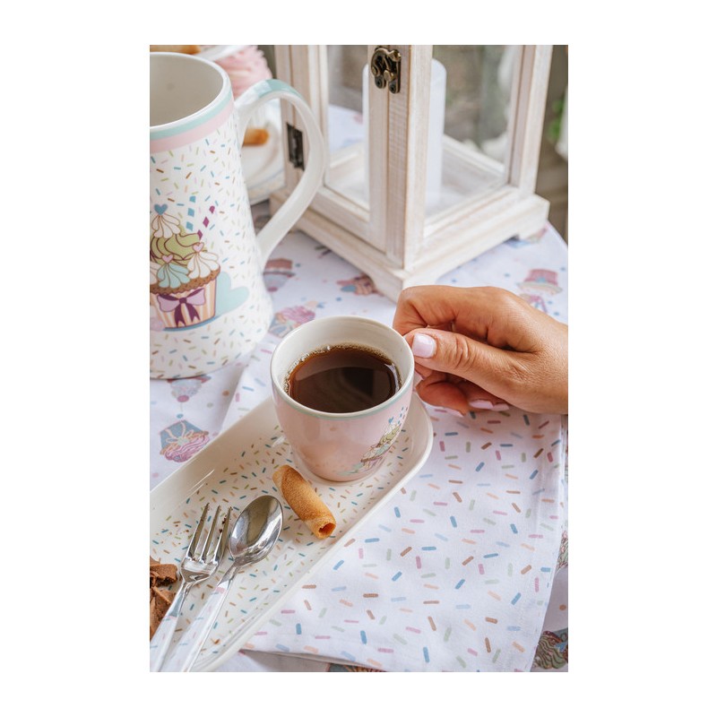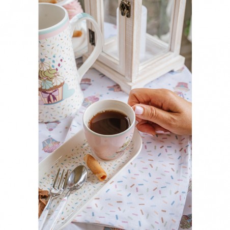 Tazza con disegni di cupcake e piattino disponibile in due fantasie.