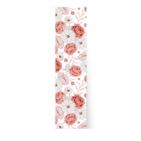 Nastro in raso con fantasia floreale, altezza 2,5 cm.