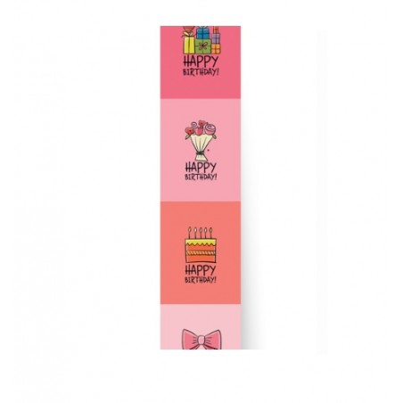 Nastri in tessuto colorato con disegni e scritta "Happy Birthday", altezza 2,5 cm