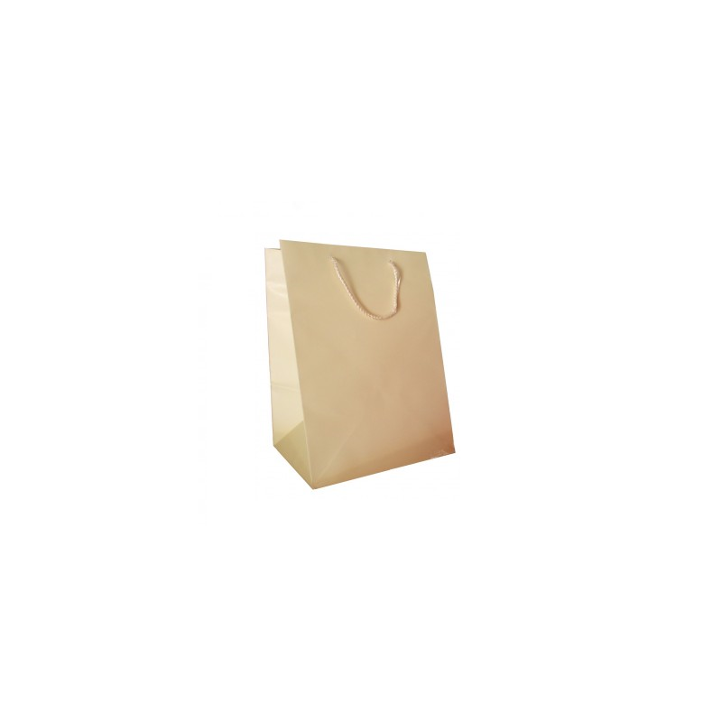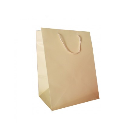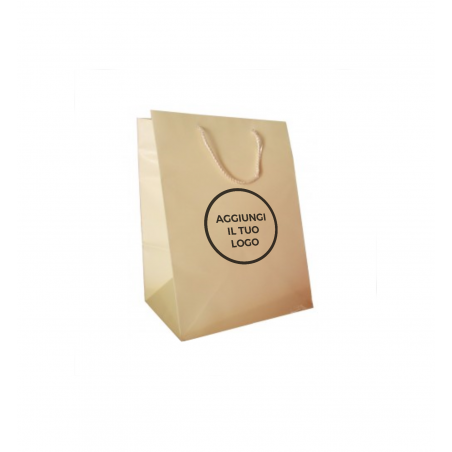 Tradizionali shopper in carta Kraft colorata con manico in cordino.