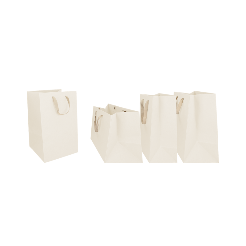Shopper portapanettone in carta di alta qualità con maniglie larghe in tessuto.