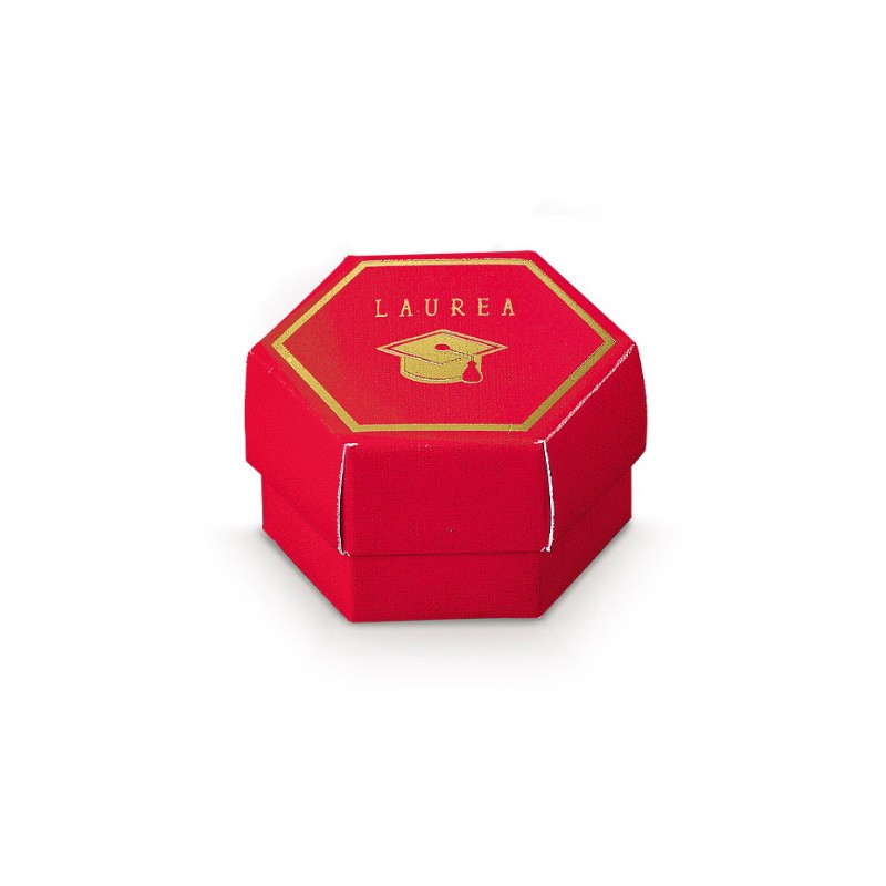 Scatolina per bomboniere esagonale con coperchio e scritta "Laurea".