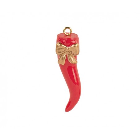 Corno portafortuna rosso con fiocco e passanastro.