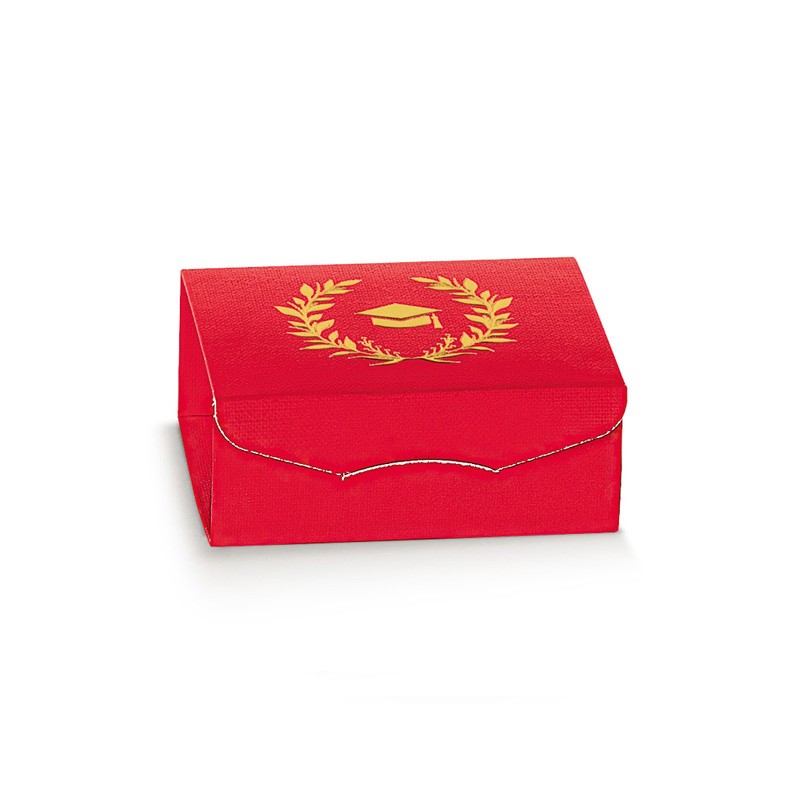 Scatolina bomboniera per laurea con disegnato alloro e tocco.