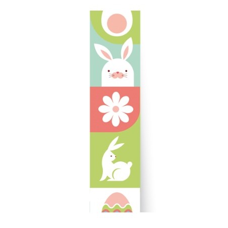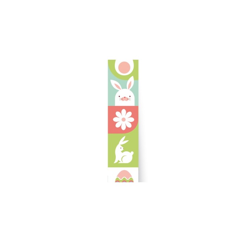 Un coniglio fa primavera e fa soprattutto Pasqua, in questo nastro una grafica con uova e conigli in colori pastello è perfetta per una confezione giovane e attuale.