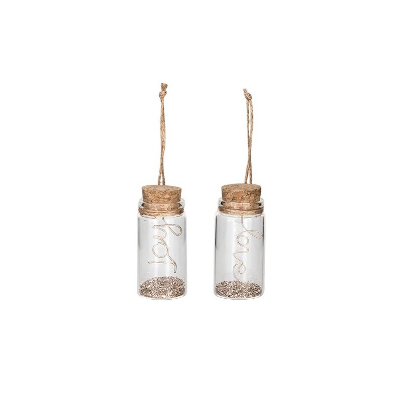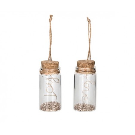 Coppia di ampolle da appendere con scritta Love/Joy Champagne glitter.