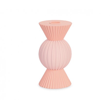 Portacandela di color rosa e pesca con sfere.