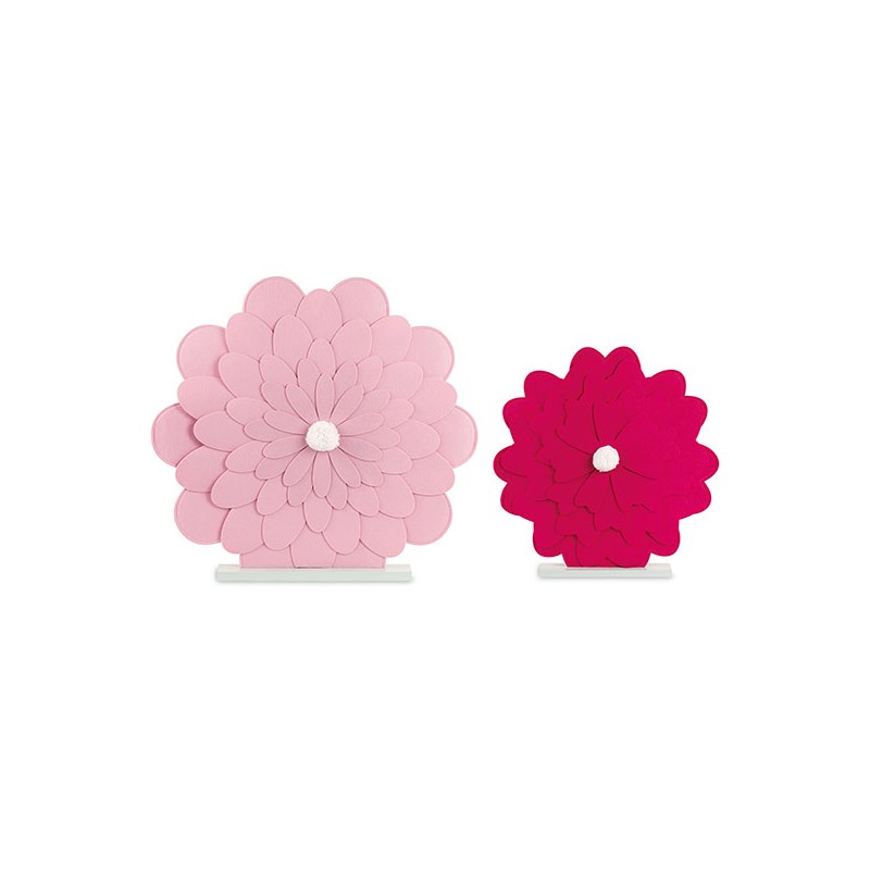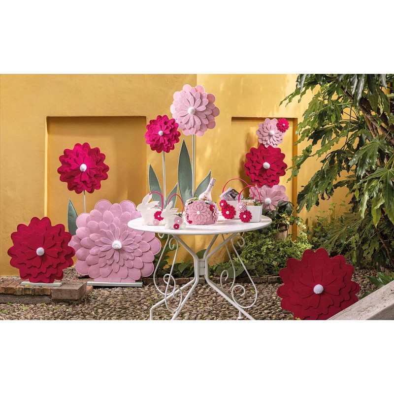 Set di due peonie in feltro con base di colore rosa e fuxia.