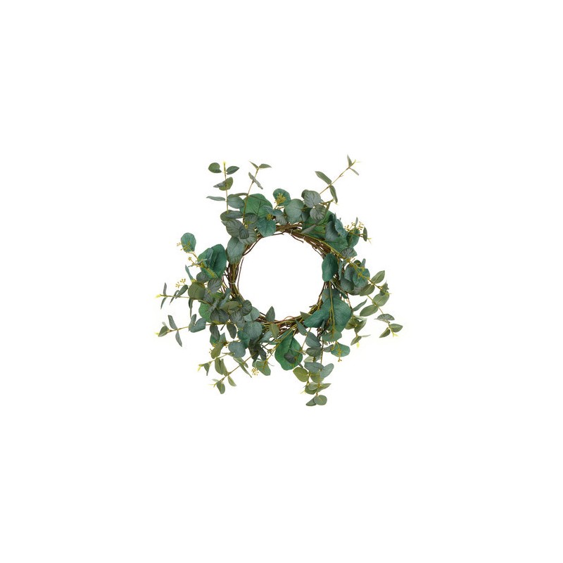 Ghirlanda rotonda fatta con rami di eucalipto