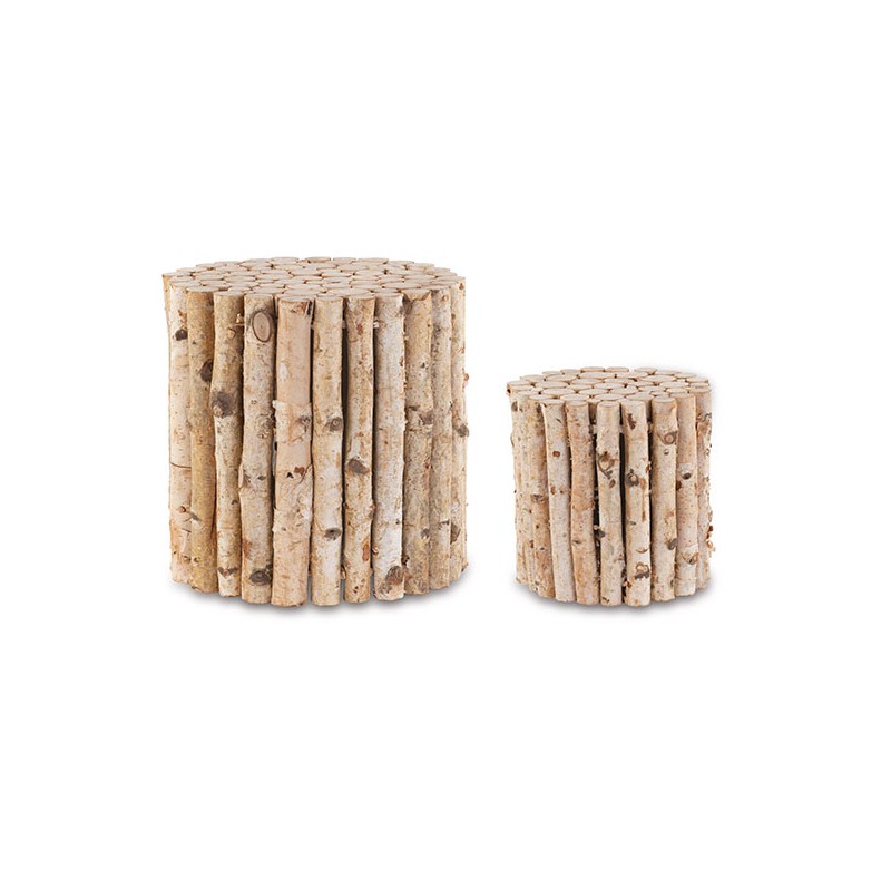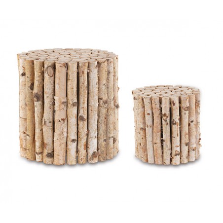 Set di 2 alzate di tronchi di betulla con sezione circolare per l'appoggio.