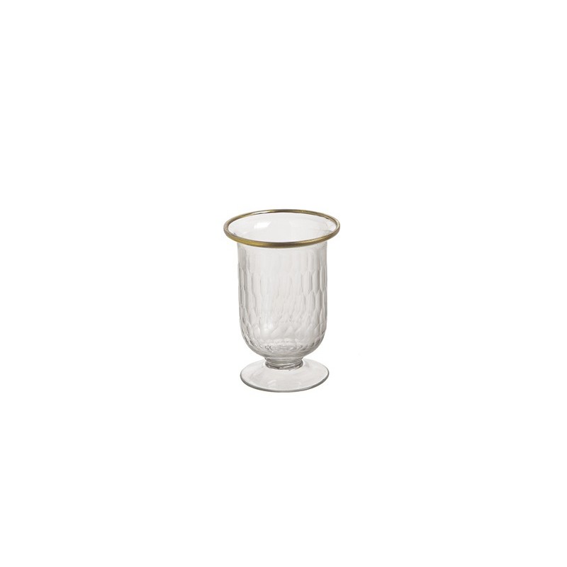 Portacandela a forma di calice in vetro trasparente con bordo oro