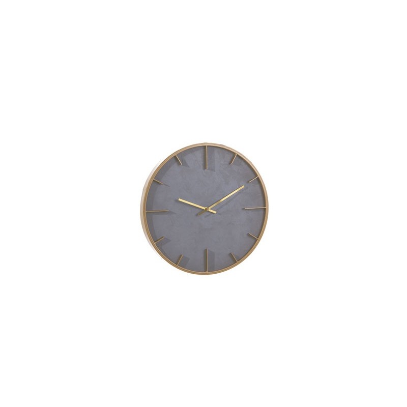 Orologio rotondo da parete in stile moderno di colore grigio e oro.