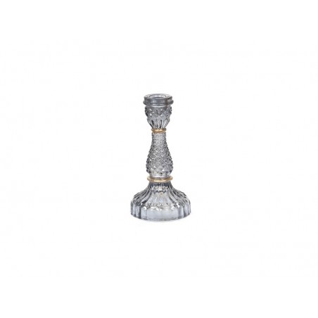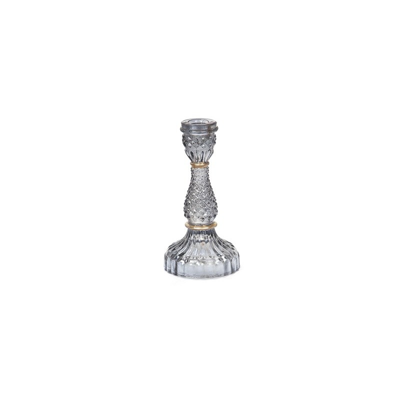 Portacandela in vetro color cenere in stile vittoriano con finiture oro.