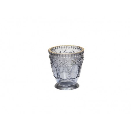 Porta tea-light in vetro color cenere con bordi oro.