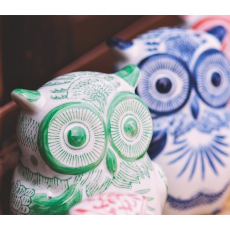 Gufetto tricot in ceramica disponibile nei colori rosso, blu o verde assortiti